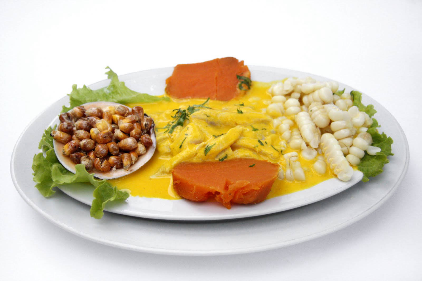Solo Cau Cau, Ají de gallina Carapulcra, frejoles con seco